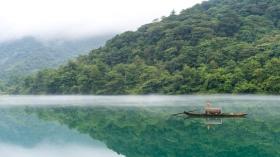 到达观景站台,峡谷间也逐渐光亮起来。江面升起层层薄雾,丝带一般环绕在翠峰屏列的峡谷间,一时间有点恍惚,仿佛自己是在观看一幅动态的中式山水画卷。雾色虽美,但心中总会觉得还缺点什么,直到一艘艘小渔船驶向蒙蒙白雾中,这幅秀美的山水画卷才算彻底完整。