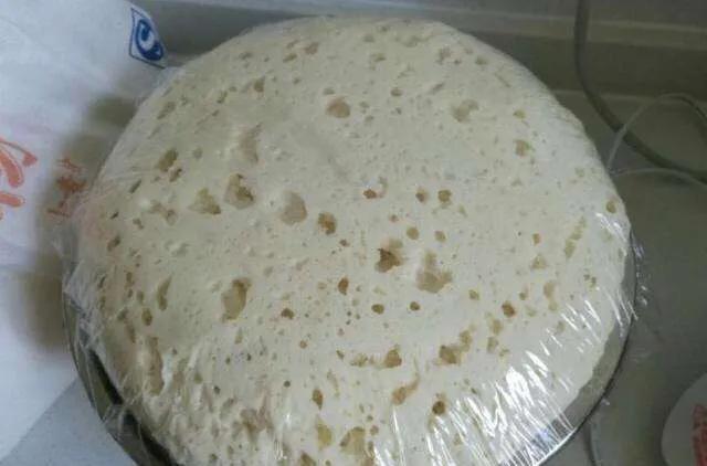 3、 面团和好以后,盖上保鲜膜,放到温暖的地方